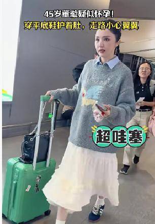 值得注意的是,董璇在机场赶飞机时可是扛着肚子走的,这走路姿势不得不让人多想。
