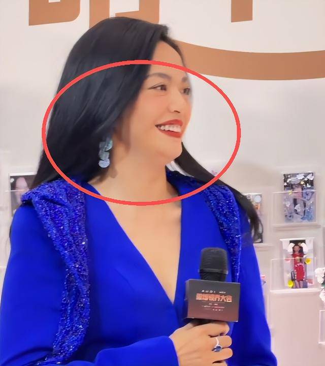 童瑶穿着一身深蓝色的抹胸裙,把身材凸显的倒是很完美,但就是腋下管理略微有些尴尬,副乳赘肉非常明显。