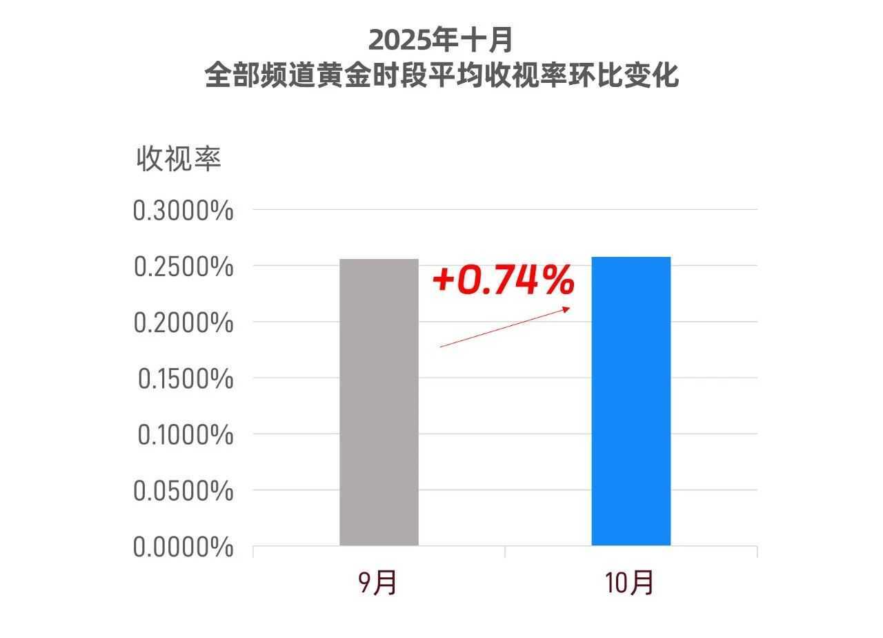 近日,酷云数娱公布了2025年10月剧集市场表现。数据显示,国内剧集市场迎来收视回暖态势。据统计,全部频道黄金时段整体平均收视率较 9 月增长 0.74%,其中央视凭借头部剧集强势领