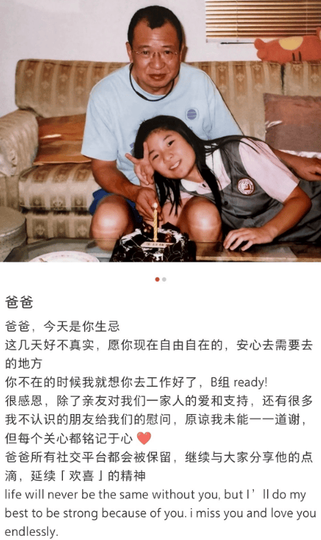 11月4日,许绍雄女儿许惠菁发文悼念父亲生忌,她写道:“爸爸,今天是你生忌,这几天好不真实,愿你现在自由自在的,安心去需要去的地方,你不在的时候我就想你去工作好了,B组ready!很感恩,除了亲友对我们一家人的爱和支持,还有很多我不认识的朋友给我们的慰问,原谅我未能一一道谢,但每个关心都铭记于心爸爸所有社交平台都会被保留,继续与大家分享他的点滴,延续「欢喜」的精神。