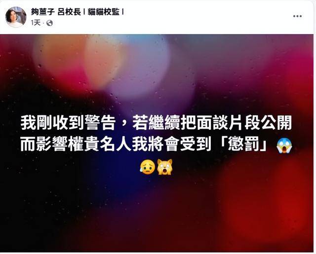 但令人意外的是,在吕校长访问片段分享的10多个小时后,她被严重警告。若继续将访谈片段公开而影响到权贵名人,吕校长将会遭到惩罚。