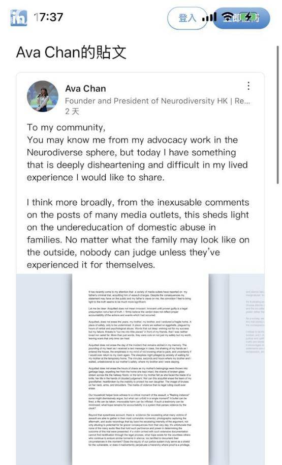 近日该事情出现很大的逆转,李明慧的女儿Ava,在其社交平台上撰写长文,并说出事情的真相,Ava认为法院即便判决她的父亲陈耀阳无罪释放,但不代表他就清白。