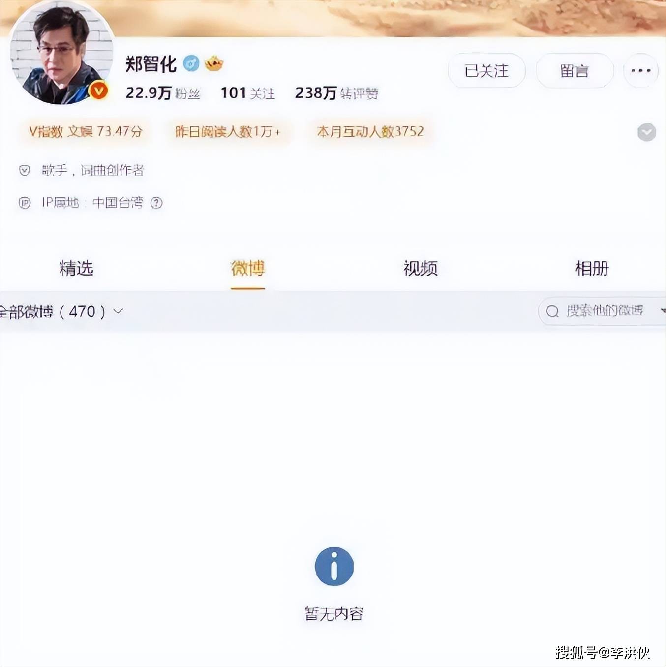 2025年11月3日,有人发现郑智化的微博竟然一条都不剩了。不光是以前发的那些日常和感悟没了,就连之前因为连滚带爬登机事件留下的道歉帖,也彻底消失了。