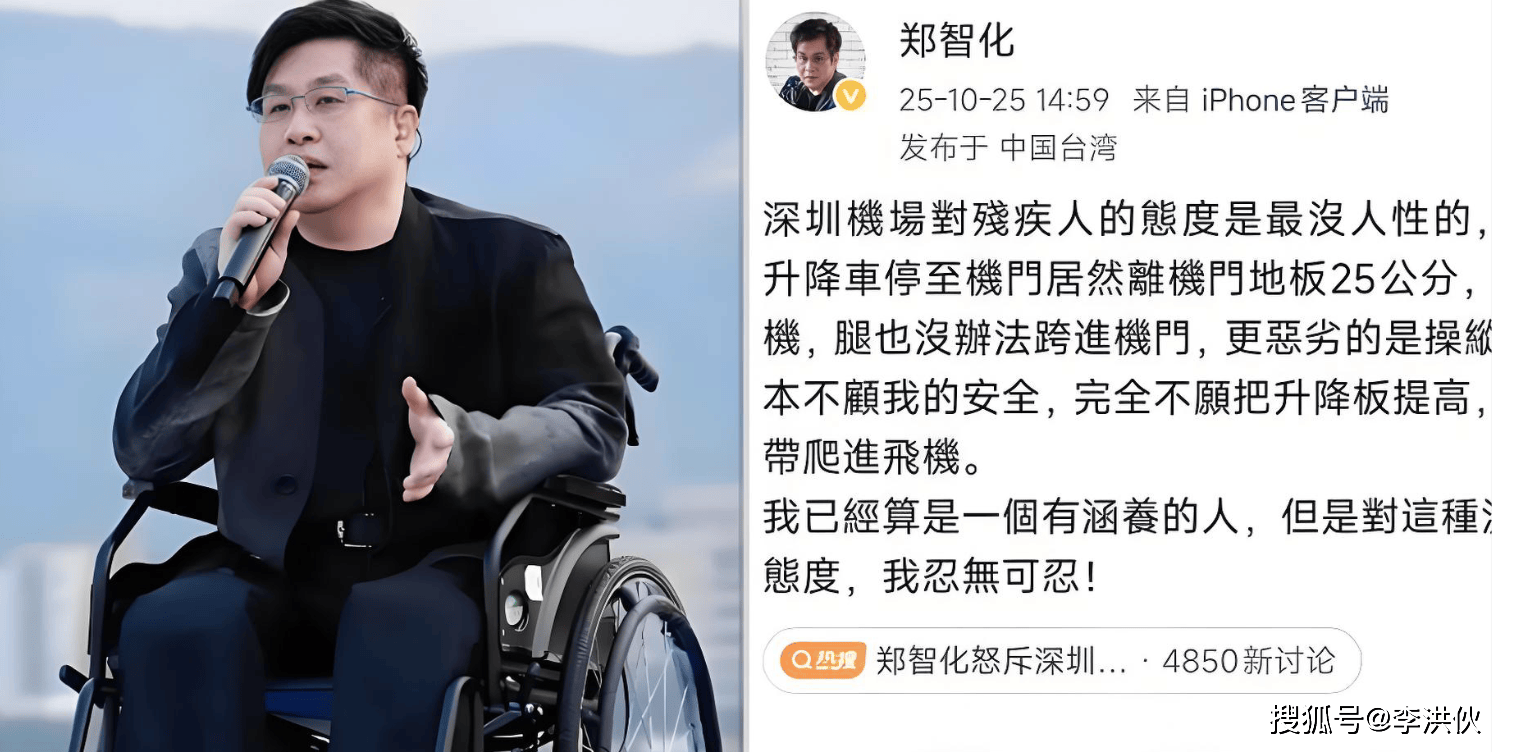 这事儿还得从10月25日那天说起,他突然发文,吐槽自己在深圳机场登机时,轮椅推不上去。