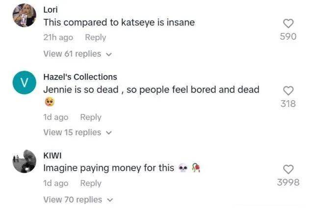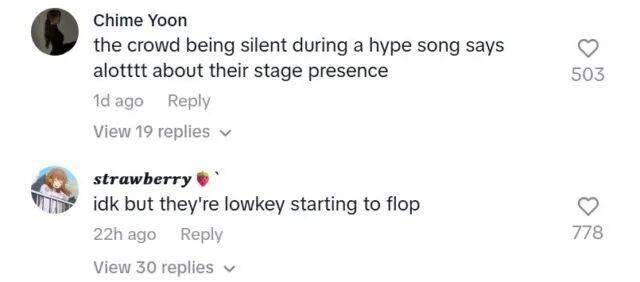 这波操作直接让粉丝破防。评论区几乎一边倒:“花天价门票就看这?”“连基础齐舞都做不到,对得起粉丝的真心吗?”TikTok原视频下更是大型“脱粉回踩”现场,有人直言:“舞台表现力跌穿底线,连粉丝都骗不下去了。”
