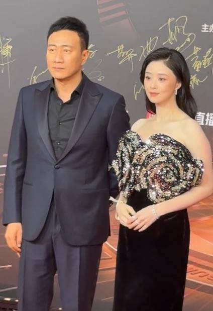 蒋欣是挽着胡军入场的,两位实力派演员站在一起,气场简直不要太强大。