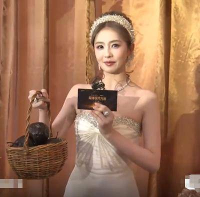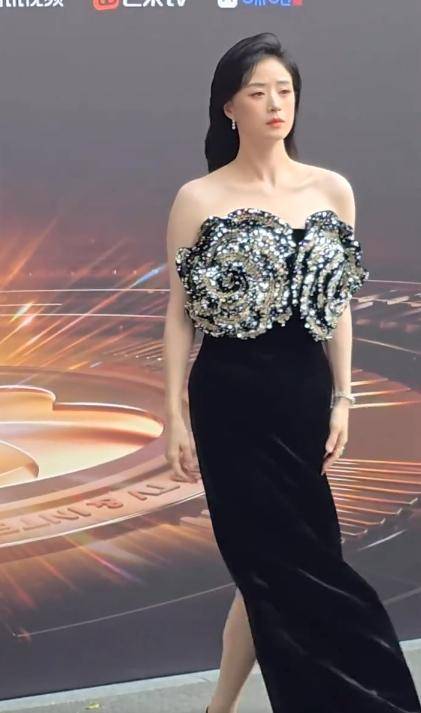 她穿着一身孔雀蓝抹胸礼服压轴出场,瞬间把场子盘活了!