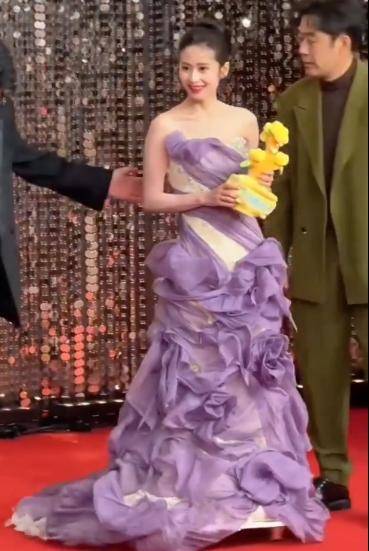 颖儿今天穿紫色纱裙一出场,我还以为看到了行走的人体骨架!