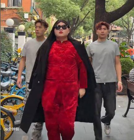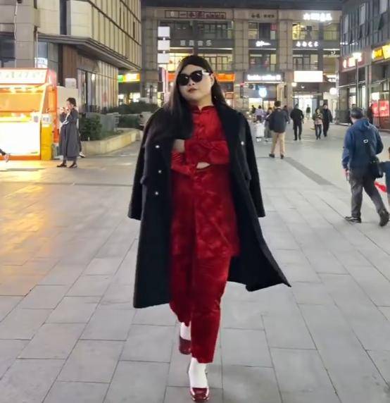 反观这位网红身上所穿的衣服,很明显就是在普通不过的红色睡衣。