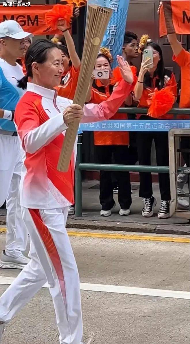 前一夜在宴会上玩的很开心的何超琼,第二天又以饱满的精神来到了全运会的火炬传递现场,她扎了低马尾,整个人看着很利索干练。她身穿一套全运会运动服,稳稳的举着火炬,慢慢的向着前方奔跑。她的步伐轻盈,笑意盈盈的,看着真舒服。