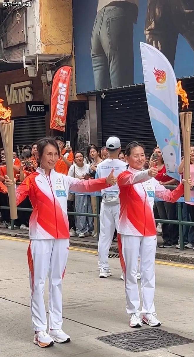 何超琼将火炬的火种传递给了妹妹何超凤,两人并肩站在一起,她们的手掌相连,姐妹俩一起传递火炬让赌王家族更风光了。何超琼虽然比何超凤大两岁,但是何超琼看着更年轻,也更漂亮,她的面相很有福气。