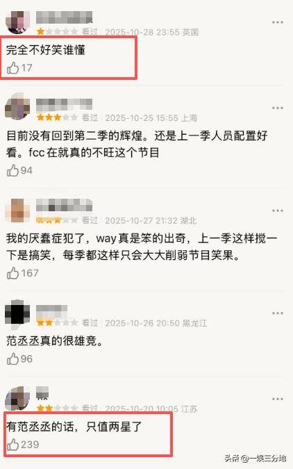 与此同时,“吃相难看、一点都不好笑、没有第二季辉煌”的字眼,也在它的评论区,出现了。