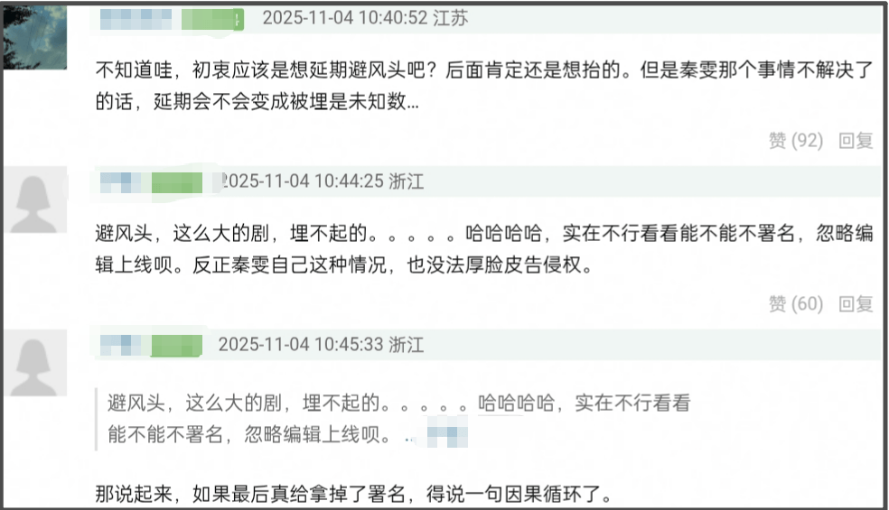 若“袭警”坐实,由她担当编剧的影视剧该如何进行,网友做了多种猜测。有称片方撤档初衷可能只是延期避风头,毕竟大投资不能轻易被埋,也有调侃称“编剧换头”,要么不写编剧署名要么换人,假设成真那就是因果循环,自食恶果。