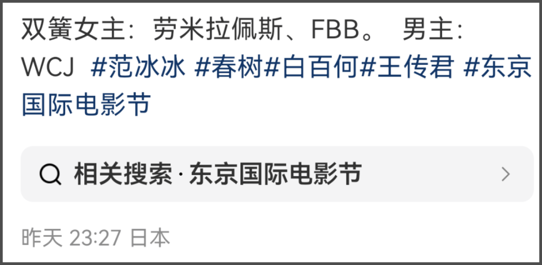 而更尴尬的是,这次东京电影节影后疑似是“双黄蛋”,有日本ip网友爆料东京电影节最佳女主是劳米·拉佩斯和范冰冰。