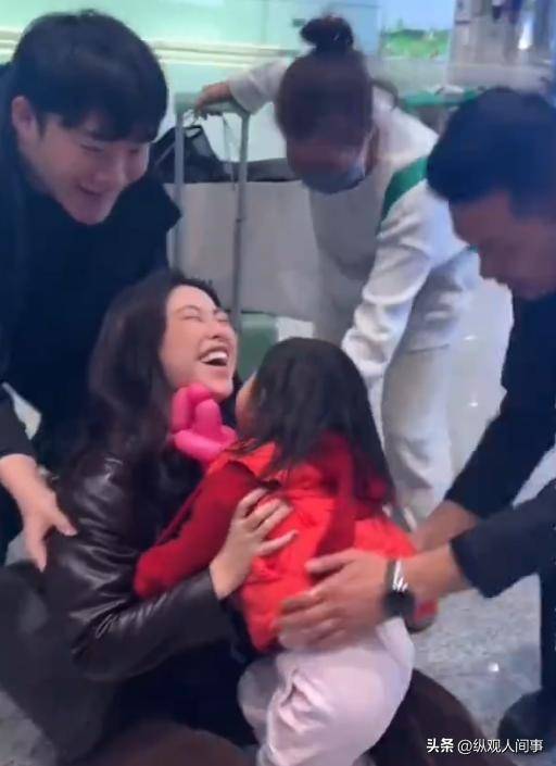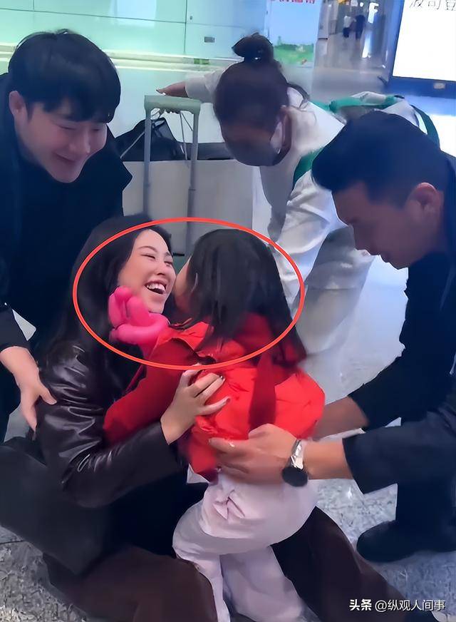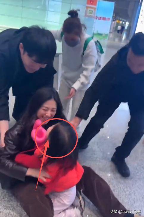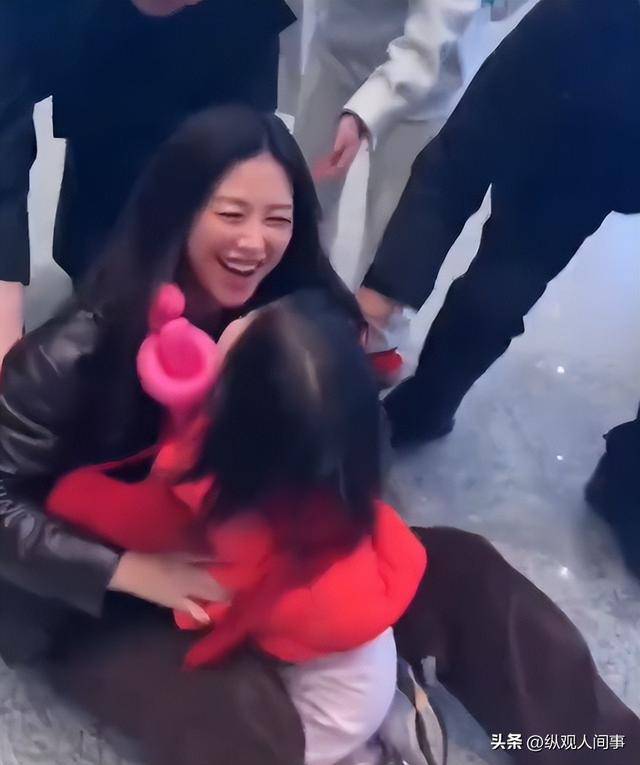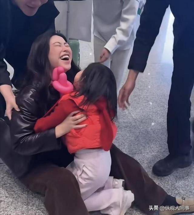 为了迎接女儿,朱珠赶紧放下东西蹲下抱她,结果小家伙的冲击力太大,母女俩一起倒在机场的地板上,说一句人仰马翻也不为过。