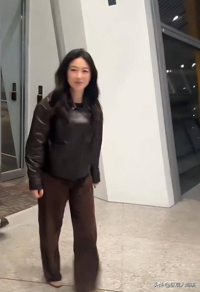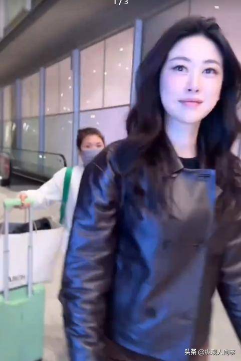 11月4日,有网友在机场偶遇朱珠,当天她穿了件黑色哑光皮质短款上衣,立领配金属拉链,看着特干练。