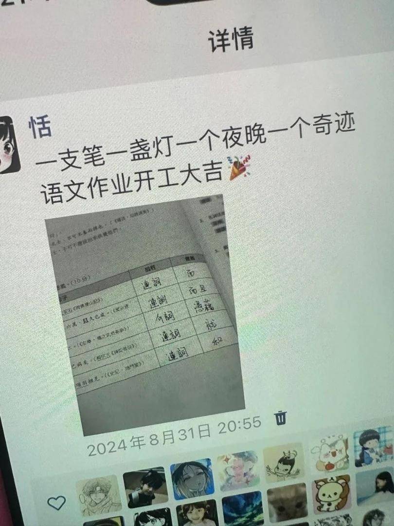 如今高二的刘楚恬和所有广大高中生一样,朋友圈是她在赶作业的场景,下面则是朋友的点赞,