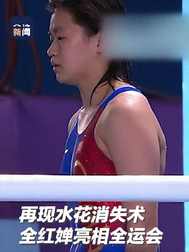 场上的裁判哨声一响起,全红蝉全神贯注,与搭档做好准备纵身一跃,神态依旧优雅从容,即便她的体重上涨了不少,但落入水中依然做到了“水花消失术”。