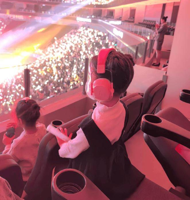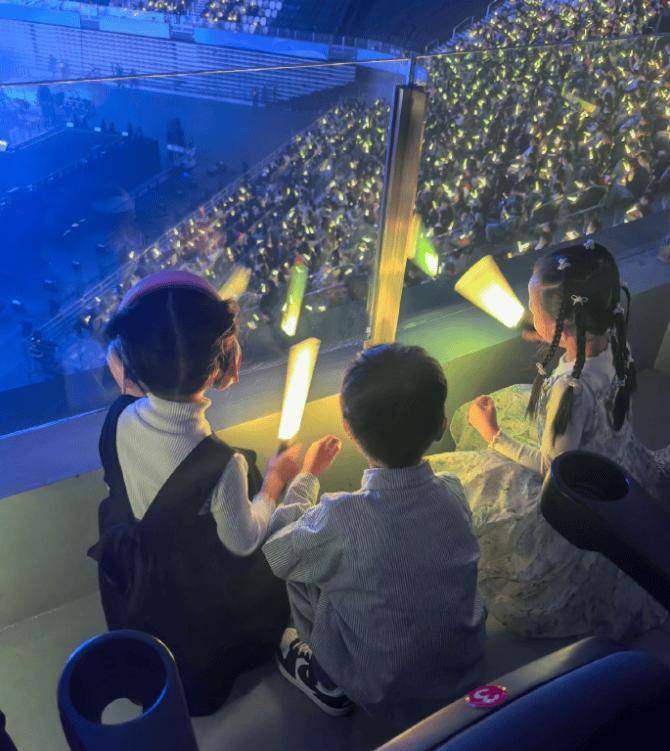 演唱会当晚,女儿Luna跟着妈妈张馨月捧场,坐在观众席上看得投入,表现雀跃,不时高举荧光棒,原来她还邀请了同学和老师一起看!