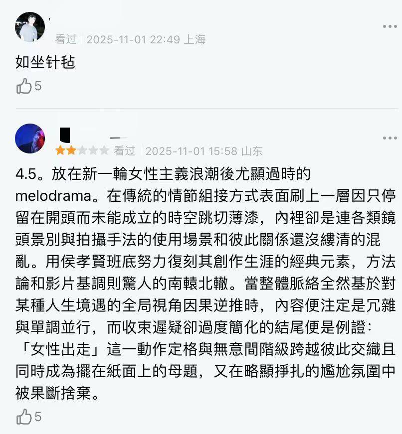 比较惨的是这个档期不行,但舒淇导演的这部电影再不上映,可能机会更不多,毕竟在国际电影节上表现不错,凭借这股东风可能会吸引更多人注意,但似乎并非如此。