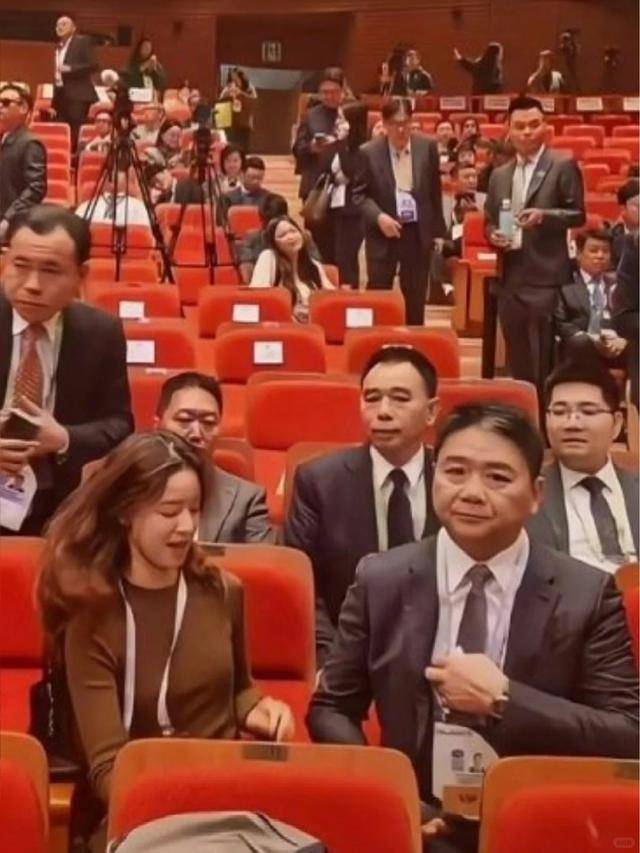 刘强东伸手扶妻子,动作看着也不太情愿,到了座位上,两人也没什么交流,表情冷漠,显得格外陌生。