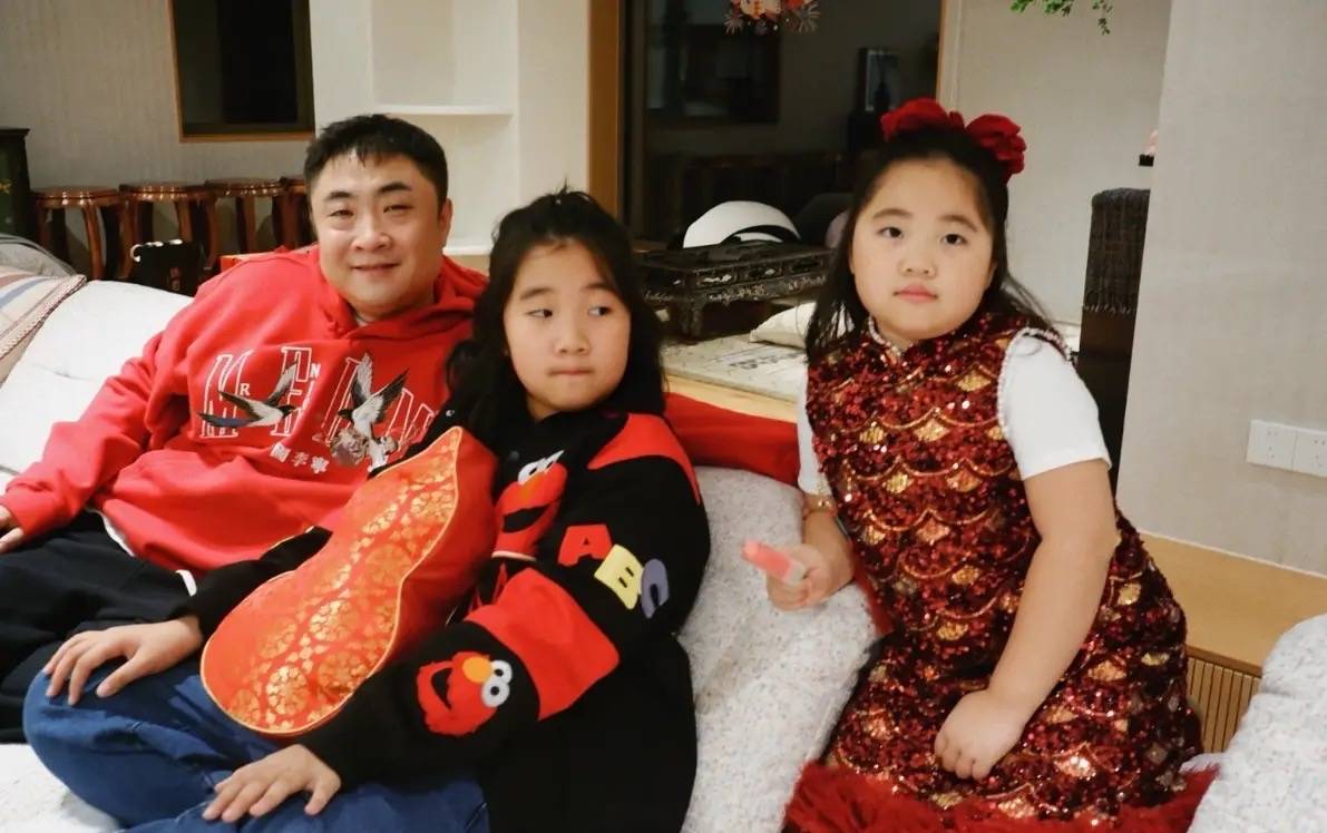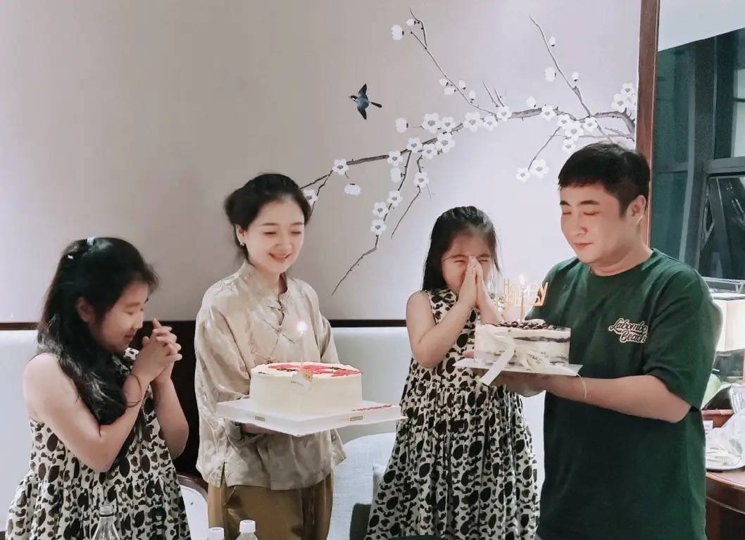 给女儿过生日的时候,也会特意准备2个蛋糕,对两个孩子还有老婆都是满满的宠爱。两个女儿经常穿同款的衣服,扎同样的发型,作为父母对孩子没有偏爱,一碗水端平。