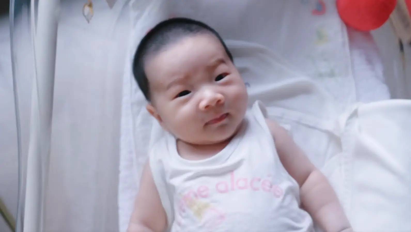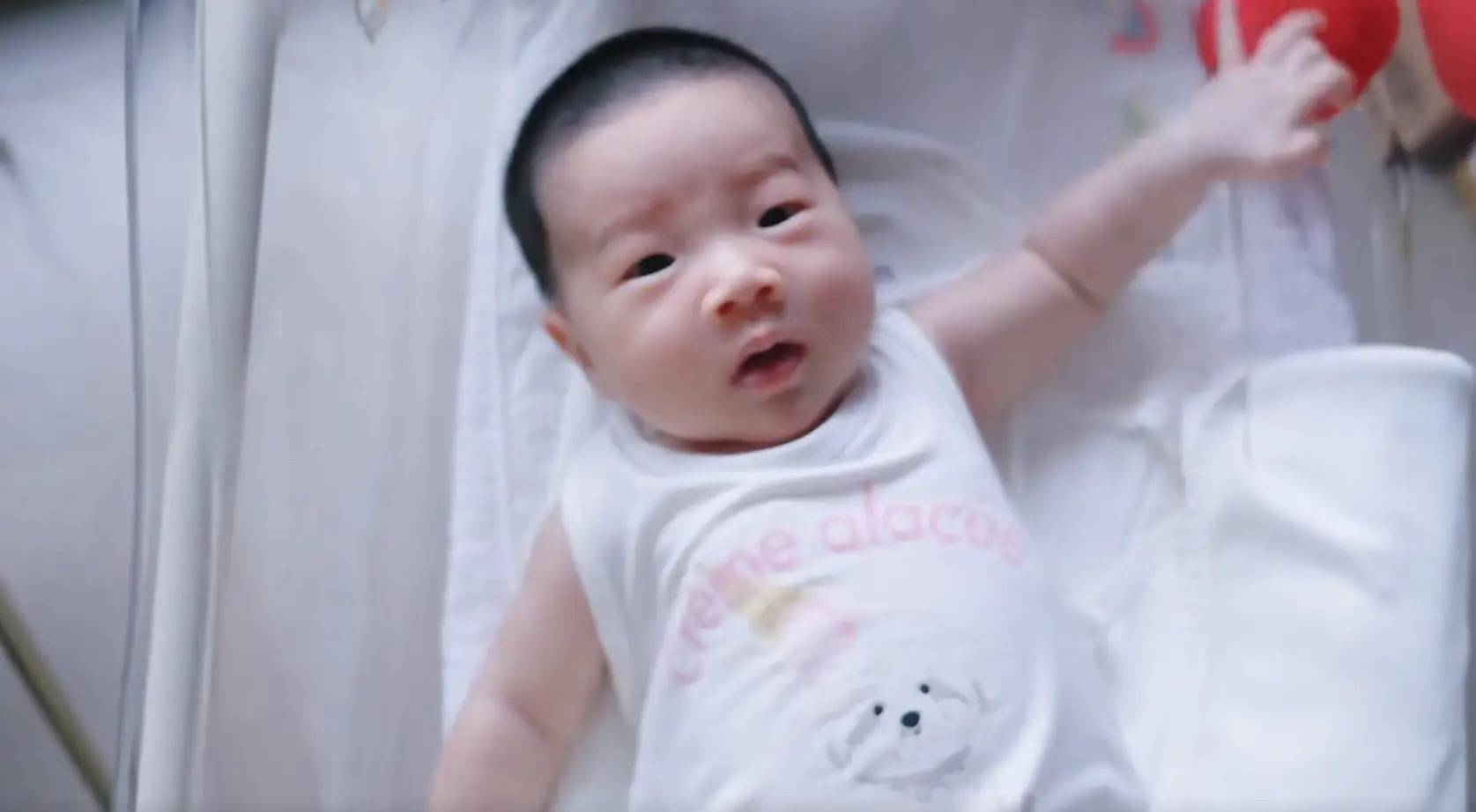 视频片段里,看到了一个白白胖胖的小宝宝。他躺在软绵绵的床上,穿着轻薄的无袖上衣,看起来室内空调应该开的很足。