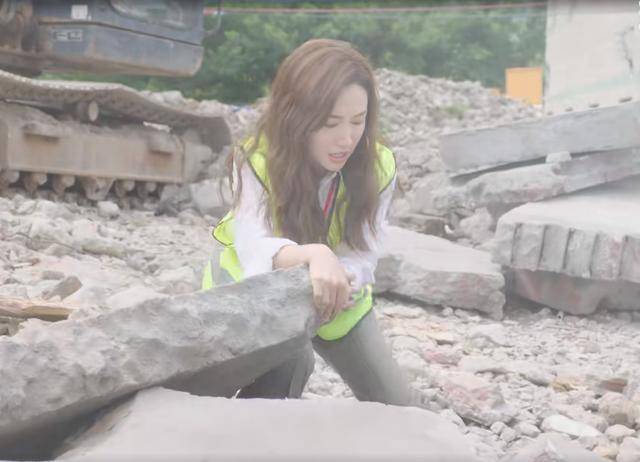 直播过程中,发现有人被压在瓦砾下,她第一时间冲下楼告知救援人员情况,并试图自己去救人。
