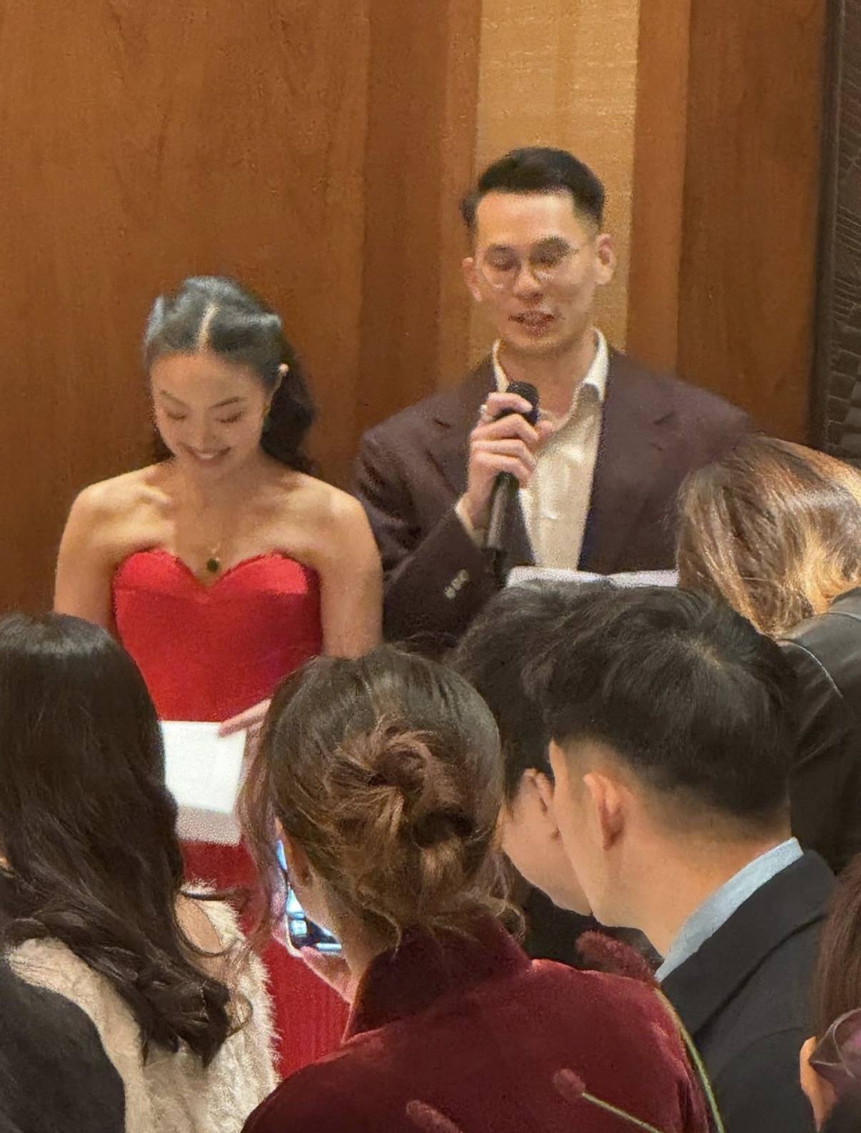 在婚宴现场,罕见她与父亲以及兄长合照,就长相而言,她与祁文杰长得还挺像的,倒是与兄长不是很像,不知道其兄长是不是像母亲。婚礼现场,一对新人当众宣誓、并且发言,祁文杰的女儿一身红妆,新郎在打扮上看起来比较随性,穿了暗红色的西装,不过没有打领带,头发倒是梳得一丝不苟。