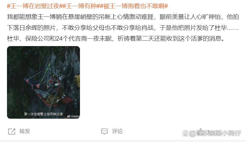 探索新境王一博在高空岩壁上挂吊帐过夜,网友:万一睡觉翻过去了咋办?户外探险这个类型看着好新奇,纪录片一出来王一博的很多举动都出圈了,看样子到时候播出了他估计又要圈一些新