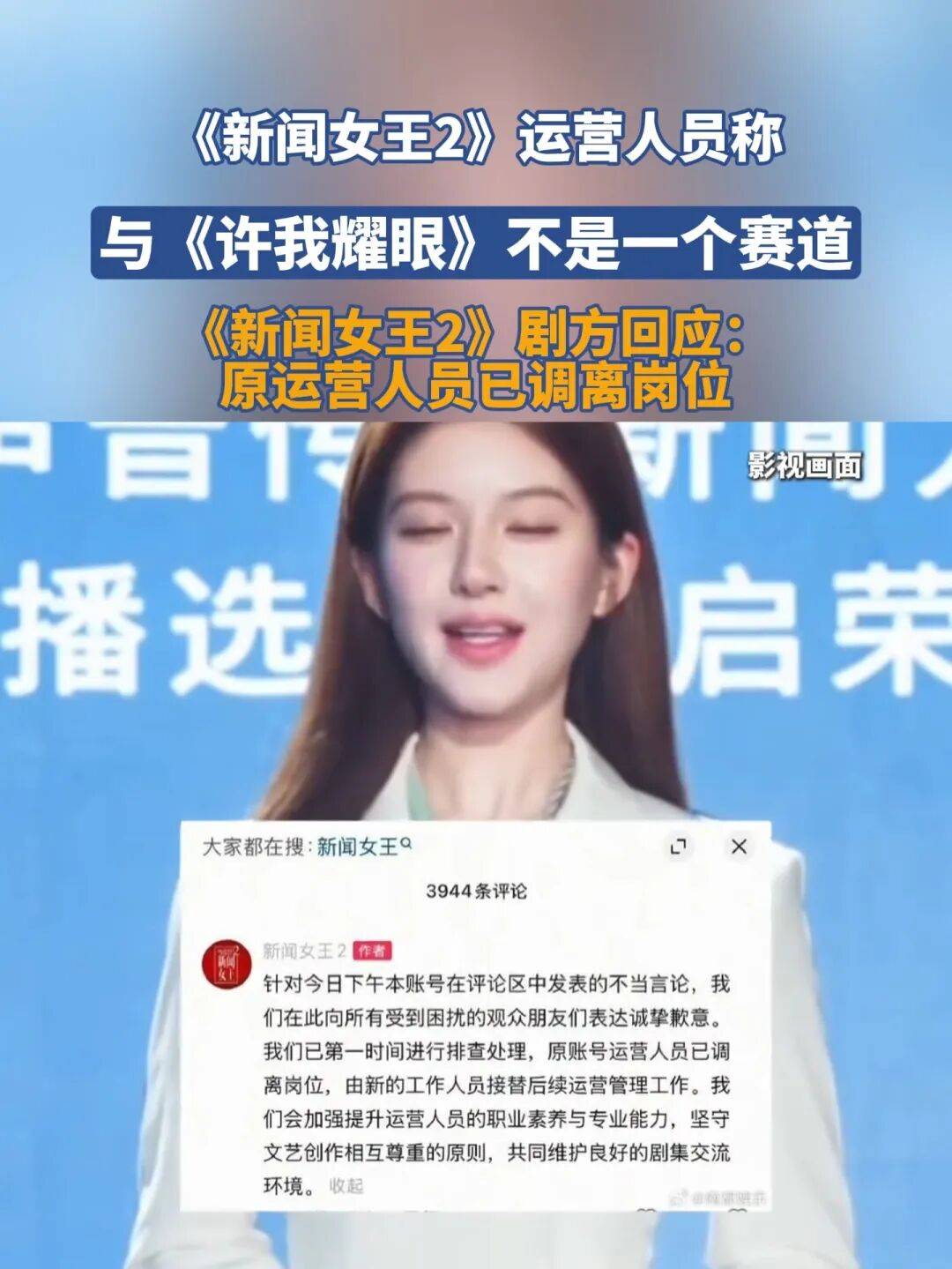 《新闻女王2》官微曾回复网友“像《许我耀眼》”称“不是一个赛道