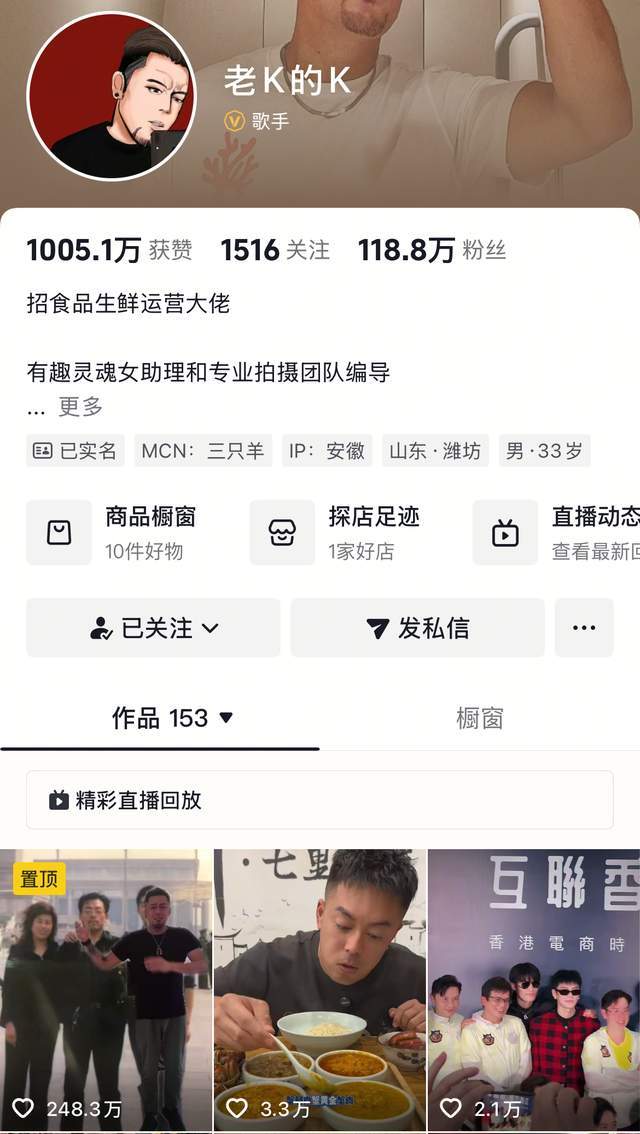 后续因为翻车,老K也没有想着离开,在其大号上,仍然标志着三只羊的标签。