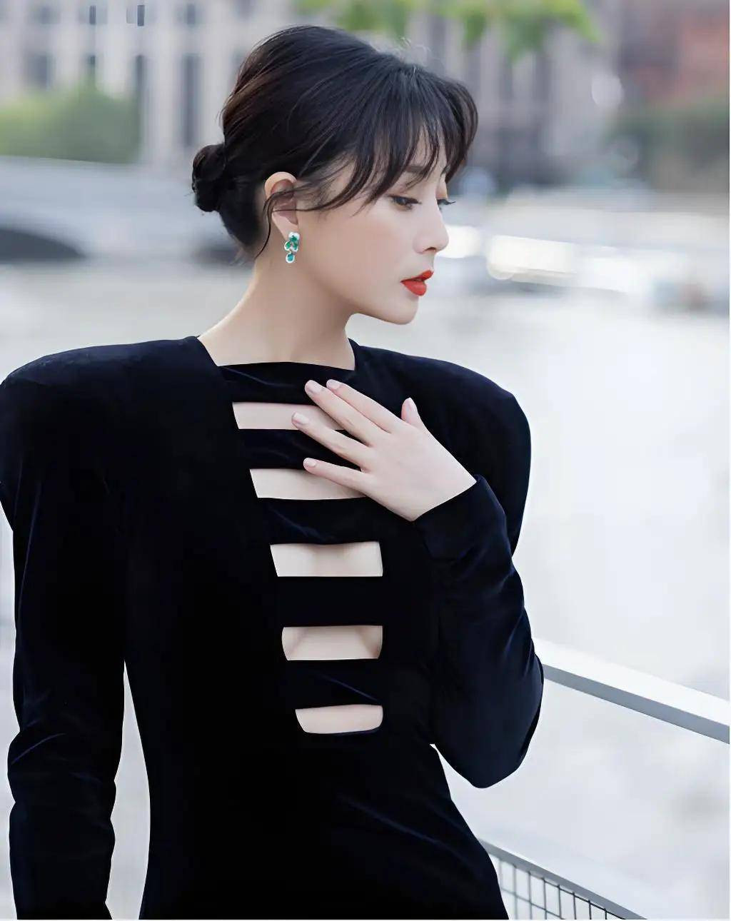 偶有巧思的上半身镂空晚礼服,把殷桃傲人丰满的曲线展现出来,若隐若现的美丽更加体现殷桃的女人味,