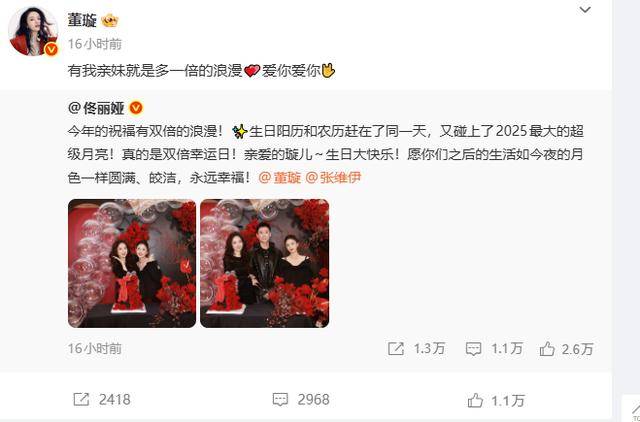 这次佟丽娅卡点晒照为董璇庆生,两人的名字直接霸榜热搜,快来看看两人照片中的状态怎么样!