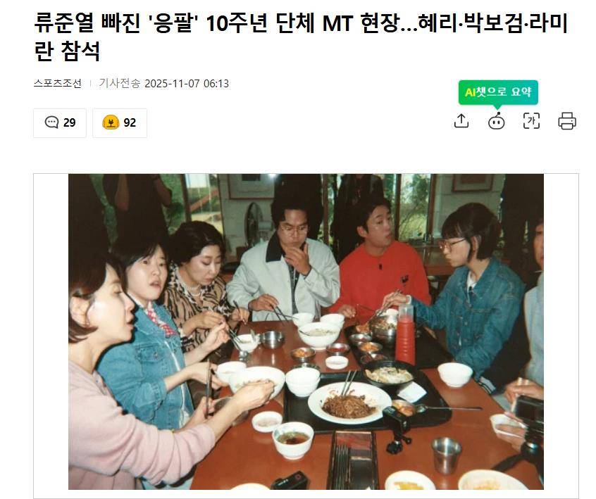 据韩国媒体11月7日报道,“《请回答1988》十周年团建”的消息刷屏网络,瞬间将无数人拉回那个温暖的双门洞胡同。然而,细心的网友却发现:合照里独独少了那位曾让人意难