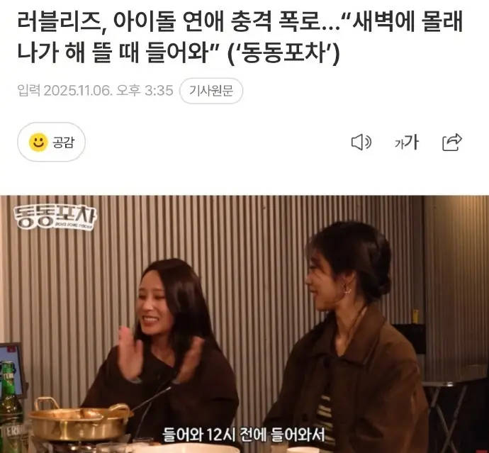 近日,Lovelyz成员徐智秀、刘智爱在节目中谈爱豆活动时期偷偷恋爱的经历,因为有门禁,“我会和室友分享恋爱情况。我们房间就在门口,所以会在12点前回宿舍,凌晨三四点再出门,