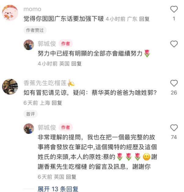 对于网友的各种疑问,郭城俊都非常有礼貌的乐此不疲的回答: