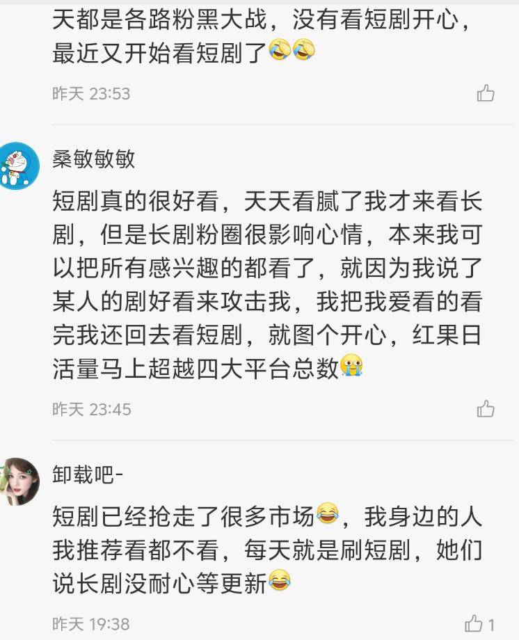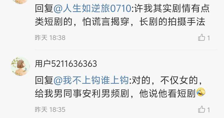 倒也不是说这些用心拍的长剧不尊重观众,而是节奏太慢,不如短剧整体带感,短剧那种狗血反转的快节奏,吃饭喝水的间隙就能刷刷,也不耽误时间。