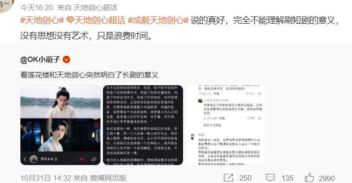 他的粉丝也在他的带动下,各种拉踩短剧,认为短剧无法拍出思想,不如他的剧那样有深度。
