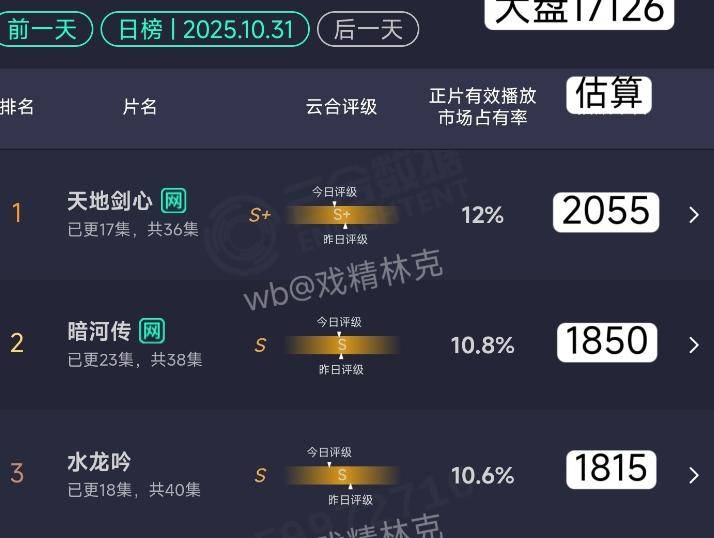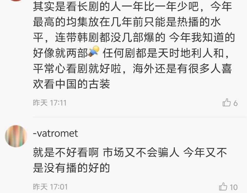 播放量冠军也才2000多万,放在以前都是扑街剧的水准,市场大盘也迟迟没破两亿。