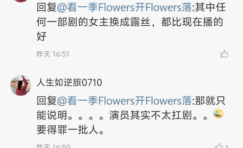 还有网友直接上升到演员的问题,说这三部剧的主演们都没什么吸引力,若是换成有观众缘的赵露思,那就会有人买单。
