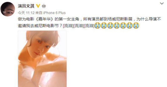 近日, 白百何在东京电影节后发文“还能这么操作…”引发争议,随后,王传君获得东京电影节最佳男主角。有传言称有人要求文晏将奖项颁给王传君。网友考古发由文晏执导的《嘉年华》也曾引发争议。作为主演的文淇曾因为缺席《嘉年华》威尼斯首映而发文:“作为电影《嘉年华》的第一女主角,所有演员都到场威尼斯影展,为什么导演不邀请我去威尼斯电影节?”