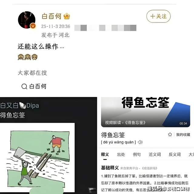 首先是白百何在颁奖前两日更新动态称“还能这么操作……”并配合上捂眼,捂耳,捂嘴的表情包,其朋友圈同步更新成语“得鱼忘筌”及“过河拆桥”的漫画。疑似暗指评奖体系不公。毕竟按照《春树》的定位看,女主白百何的戏份占比超过70%,是没有任何争议的大女主电影。但在评奖时,导演为了力保“挂件男主”王传君,不惜将灵魂女主踢下桌。