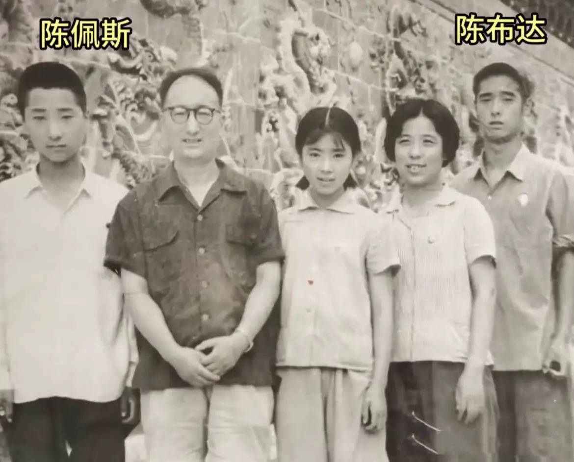 陈佩斯外甥女,还晒出了一张老照片。老照片里,哥哥陈布达站在最右边,弟弟陈配色站在父亲左边,妹妹陈丽达紧挨着爸爸妈妈。