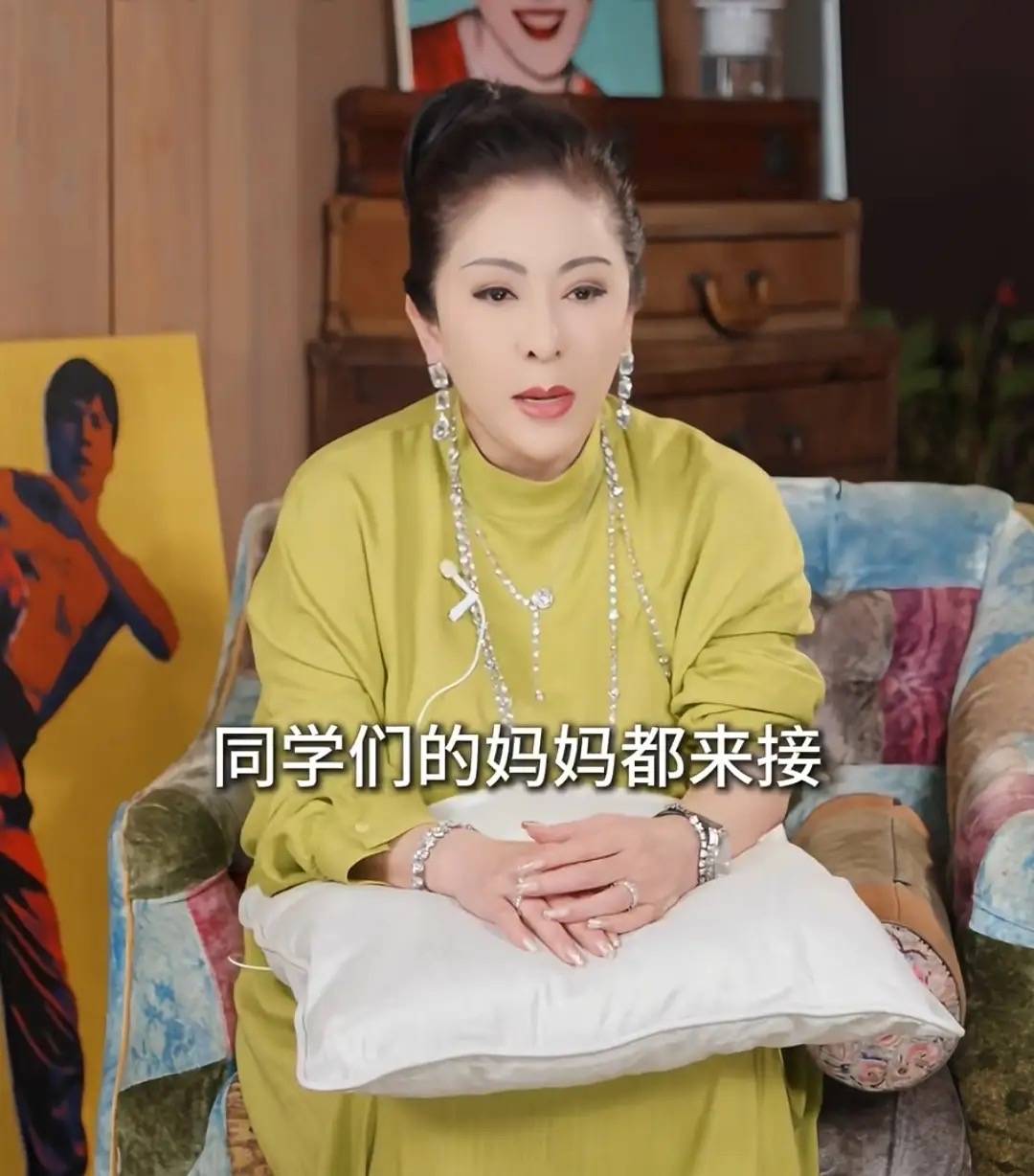 镜头前的向太,穿了一件黄绿色的衬衫裙,戴着奢华名贵的钻石珠宝,整个人都闪闪发光,特别贵气。