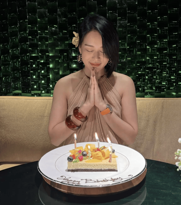 胡杏儿45岁生日穿挂脖裙戴花!老公改好不去夜店,豪送两个大镯子,对于胡杏儿的婚姻大家觉得有问题吗?