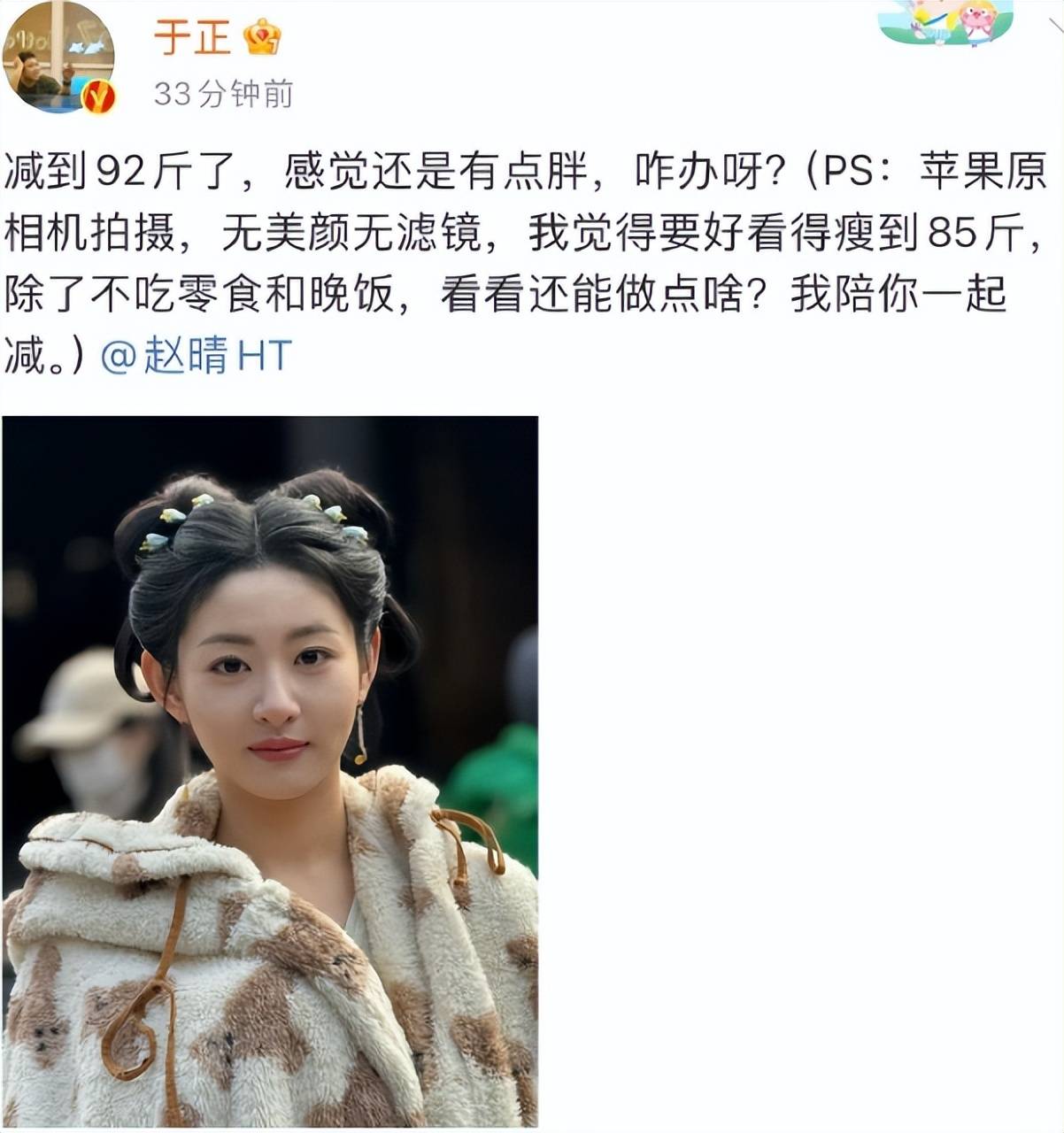 赵晴被自己老板于正嘲讽过好几次“胖”,和其他女艺人站在一起时,也能一眼感觉到她的富态感,没赵小棠上镜。