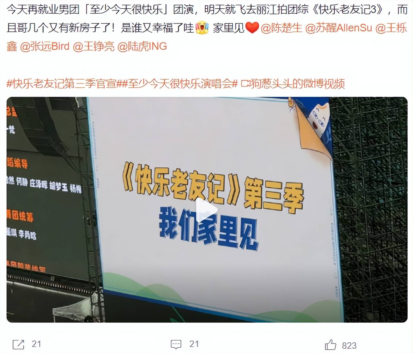 各位读者,你们认为快乐老咖获得冠军,算实至名归吗?目前,哥哥们正在开“至少今天很快乐”演唱会,然后就会去录制《快乐老友记第三季》,让我们共同期待吧!