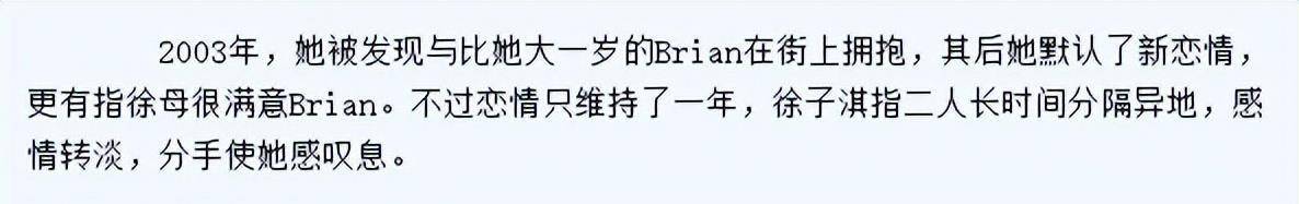 到了2003年,有人发现徐子淇和比她大一岁的Brian在街头抱在一起。