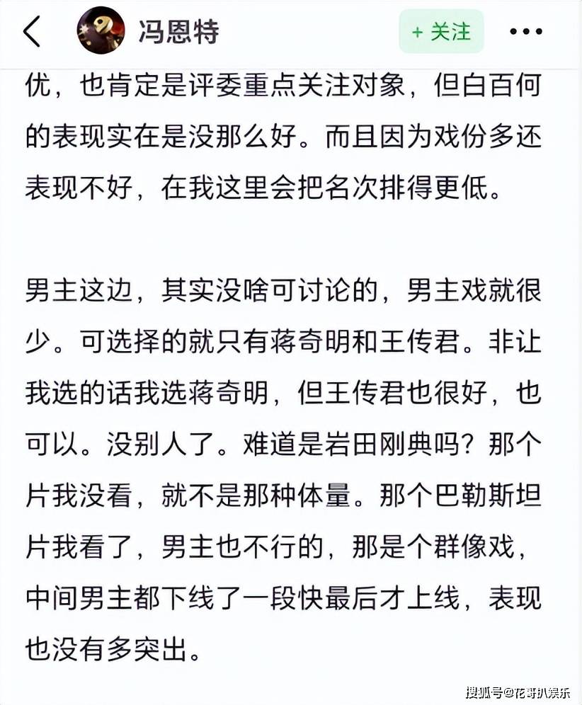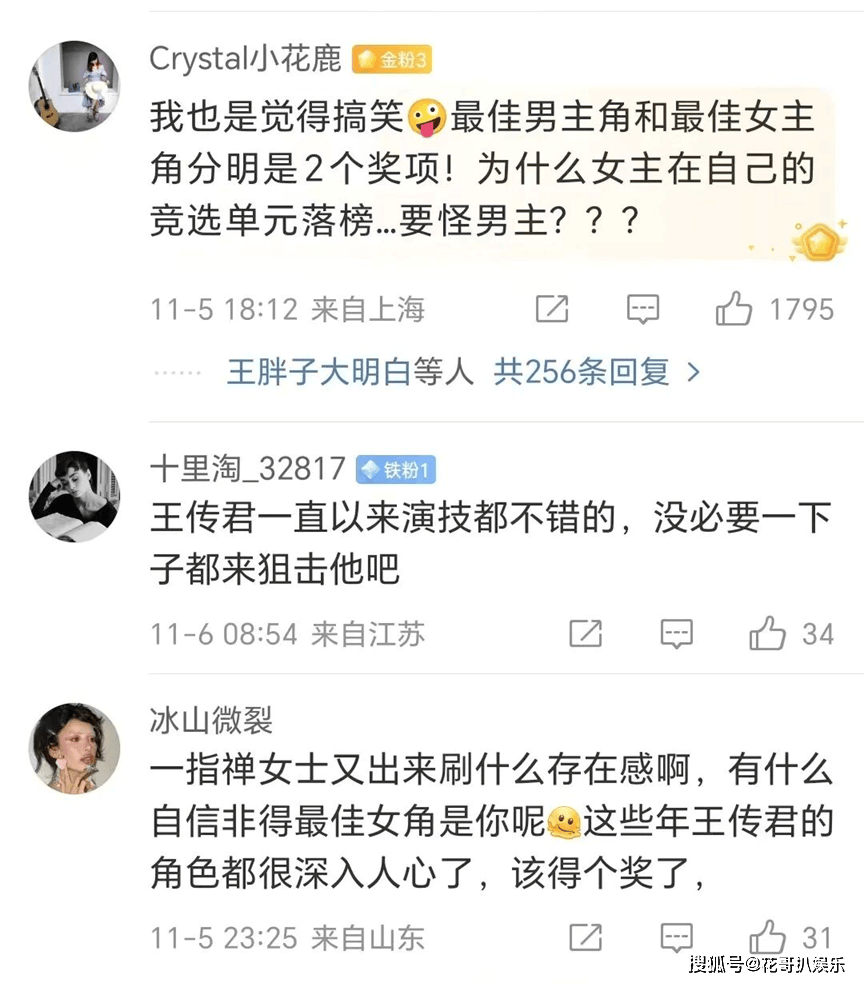 有网友觉得王传君竞争的是影帝不是影后,怎么就挤压白百何的生存空间了,白百何自己技不如人就认输,别怨天尤人。
